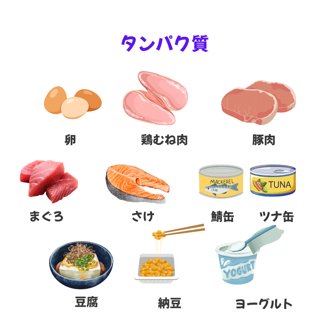 卵・豆腐・納豆・鶏むね肉・魚は、毎日どれかを入れる意識で◎。