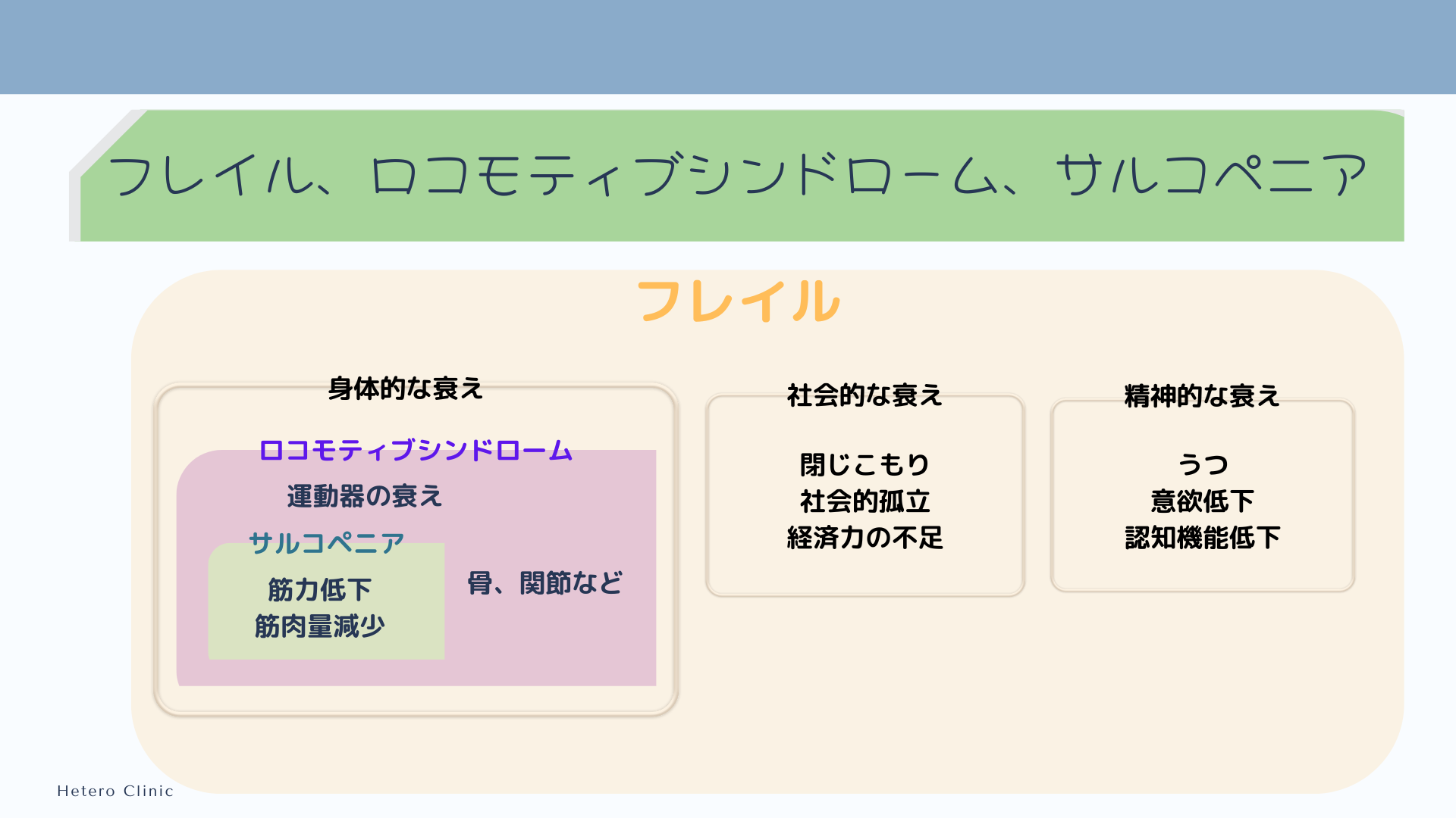 フレイル、ロコモティブシンドローム、サルコペニアの違い