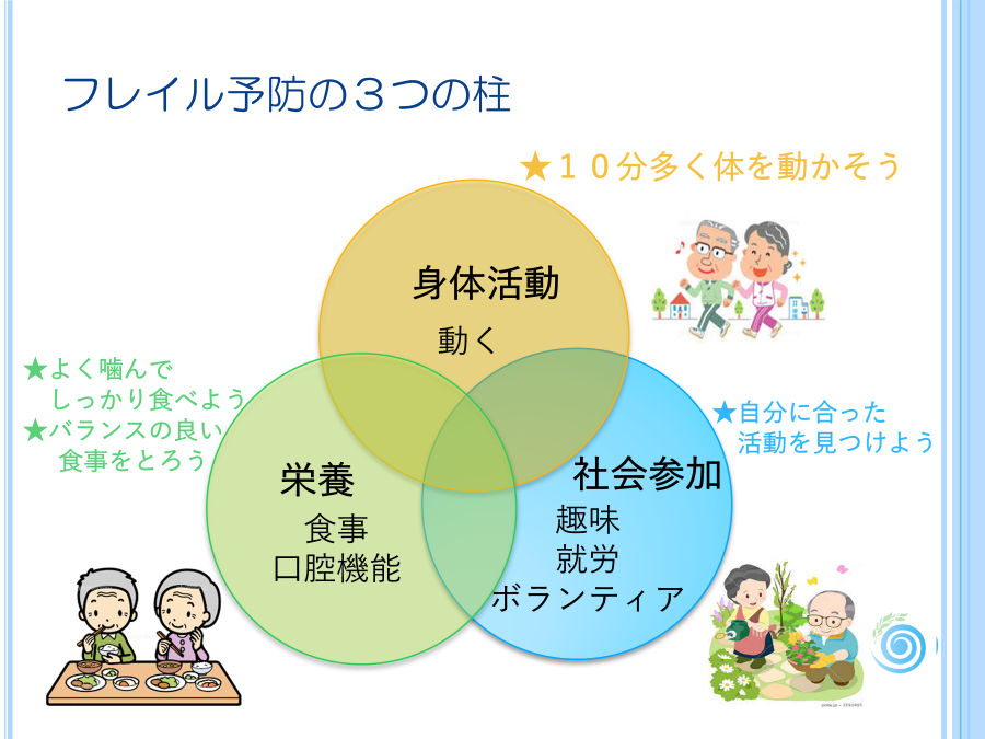 フレイルを予防するための柱は3つあります。