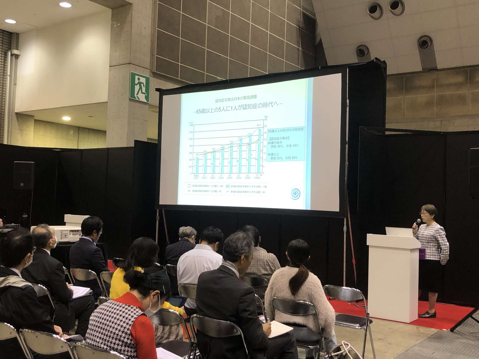今年で2度目となる講演でしたが、講演が始まった後もたくさんの方が来られまして、【認知症予防・ケア】がいかに近年注目されているかの関心の高さを目の当たりにしました。
