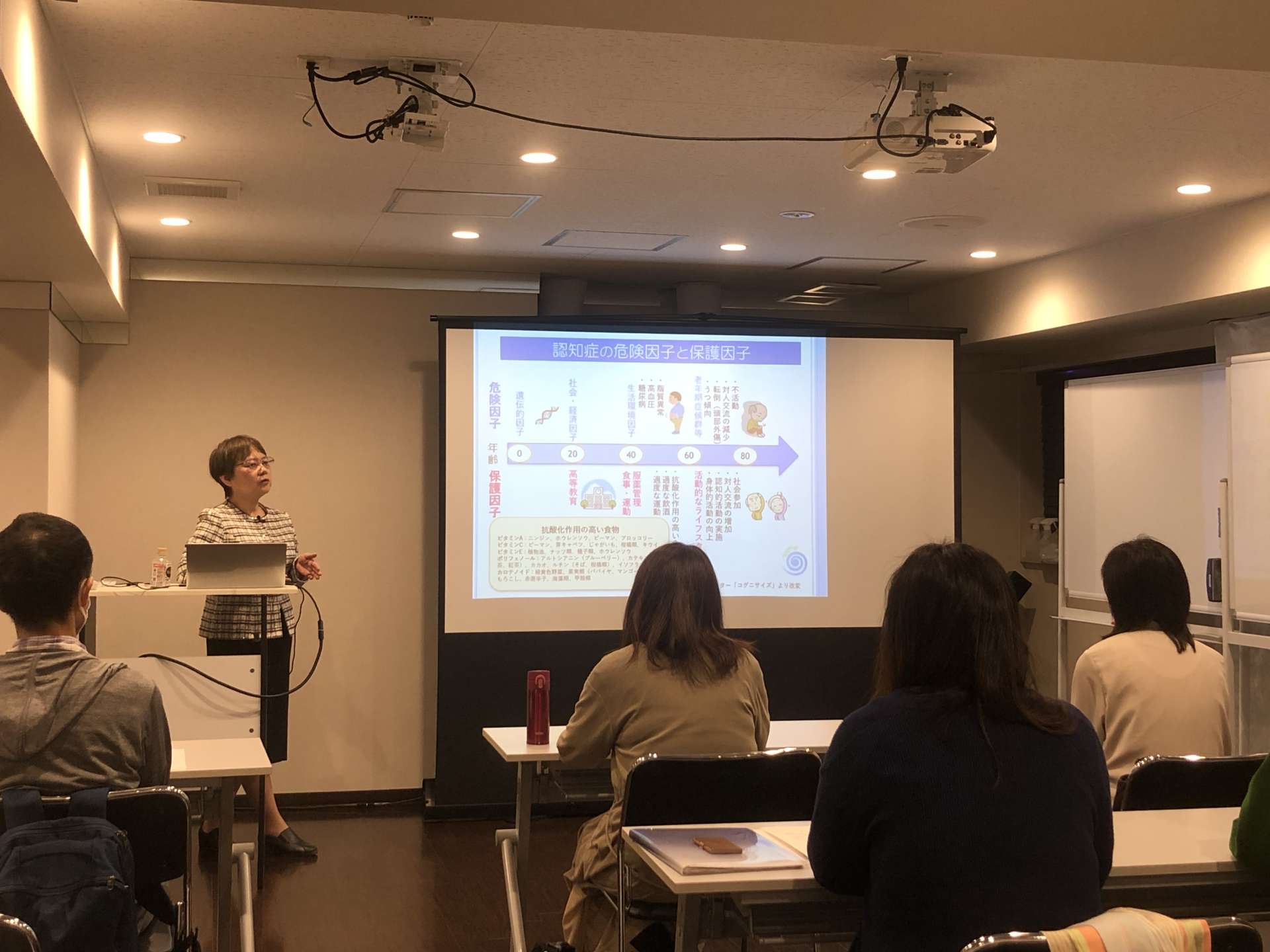 講演テーマは「認知症への対処と備え」ということで、認知症になってしまう原因から予防するために必要な対策まで幅広くお伝えしました。