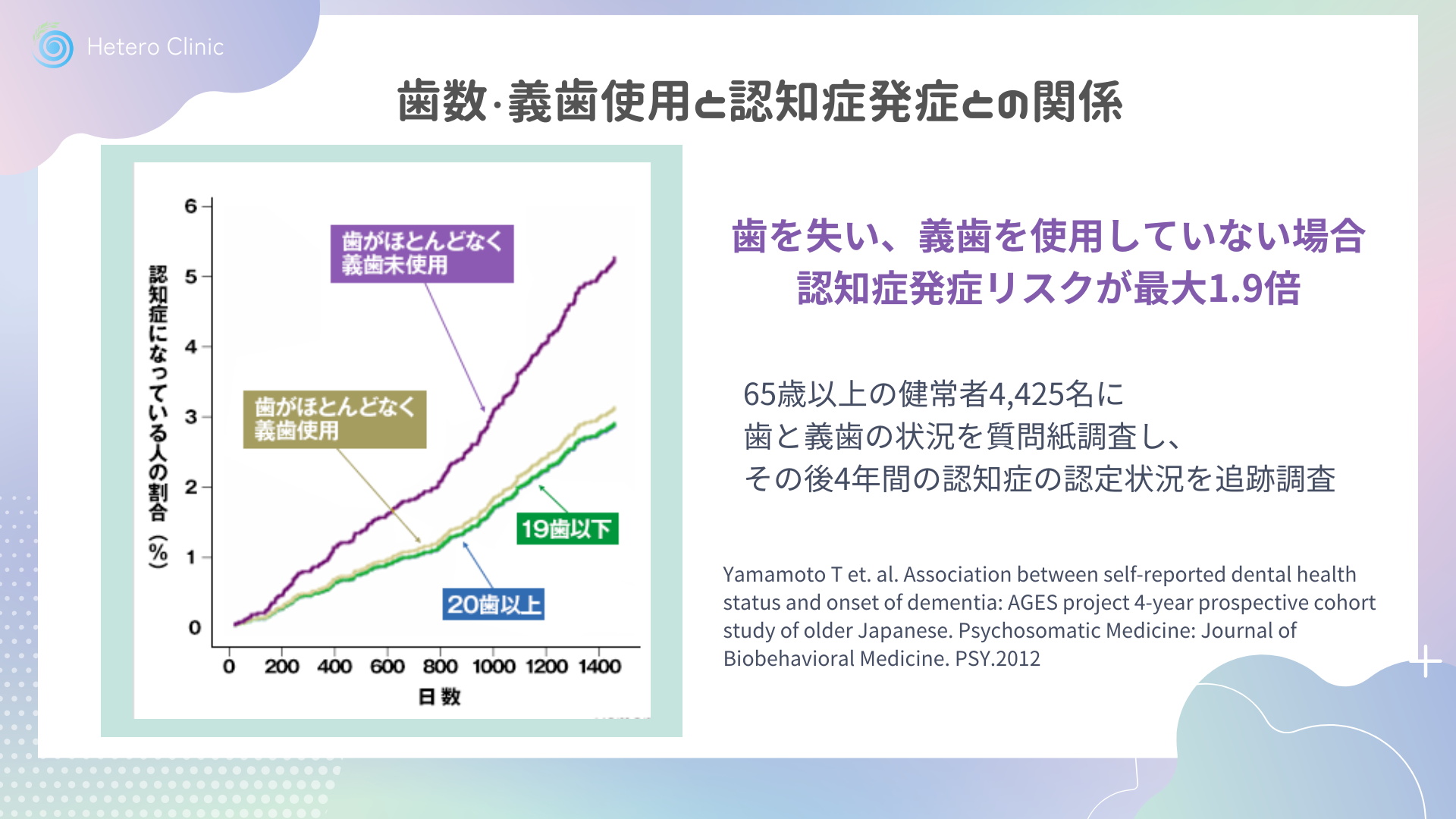 (歯の喪失+義歯未使用で認知症リスクが最大1.9倍とした大規模研究) -