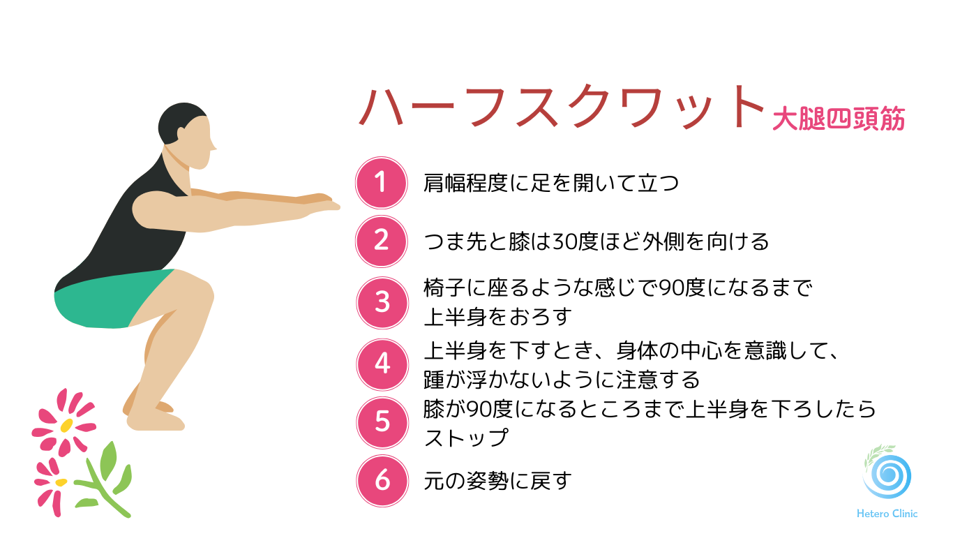 スクワットやゆっくり歩く運動でも十分。